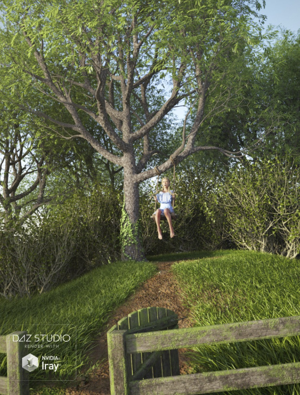 Tree And Swing for DAZ Studio. Also a set of matching poses.