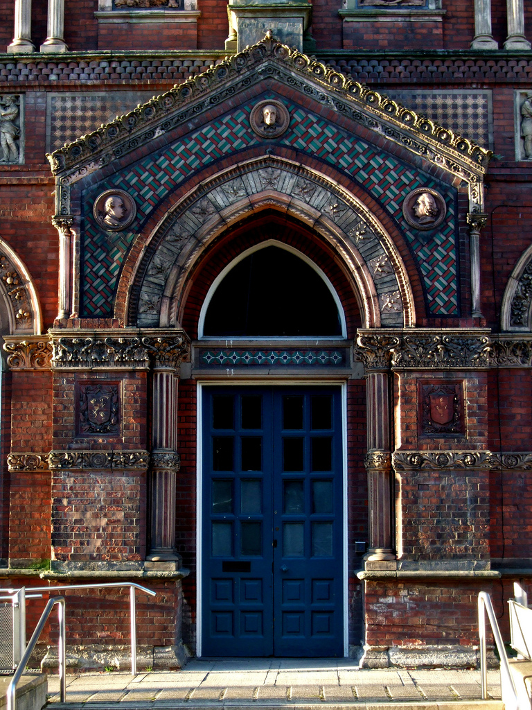 The Wedgwood Institute entrance interior is indeed heavily tiled with ceramics, as I remember it. The Institute building was the Burslem Public Library in recent years, and the public was admitted. But then the local Council closed it, and the building is now disused.