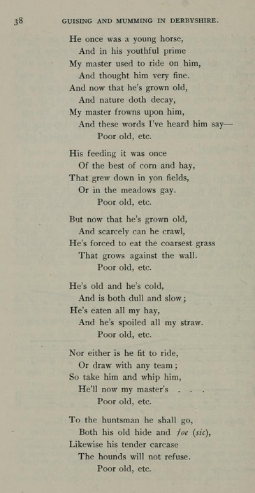 “We have a poor old horse” from Lore and Language journal, no. 09 (July, 1973). Sheffield.
