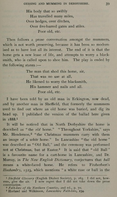 Addy, S. O., “Guising and Mumming in Derbyshire“, Journal of the Derbyshire Archaeological and Natural History Society, XXIX, Jan 1907, pp.31-42.