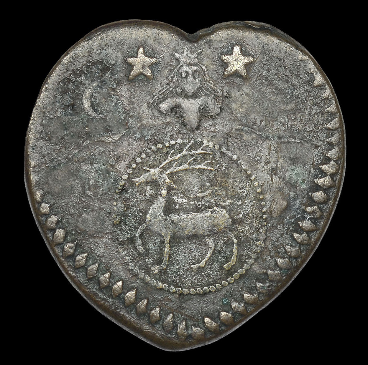 Staffordshire love token Aug12 by David Haden Archaic symbols from ancient Staffordshire token-coins (token-shape and all symbols from Eccleshall, apart from the stag and its pale-fence which is from Tipton), combined into a single design…