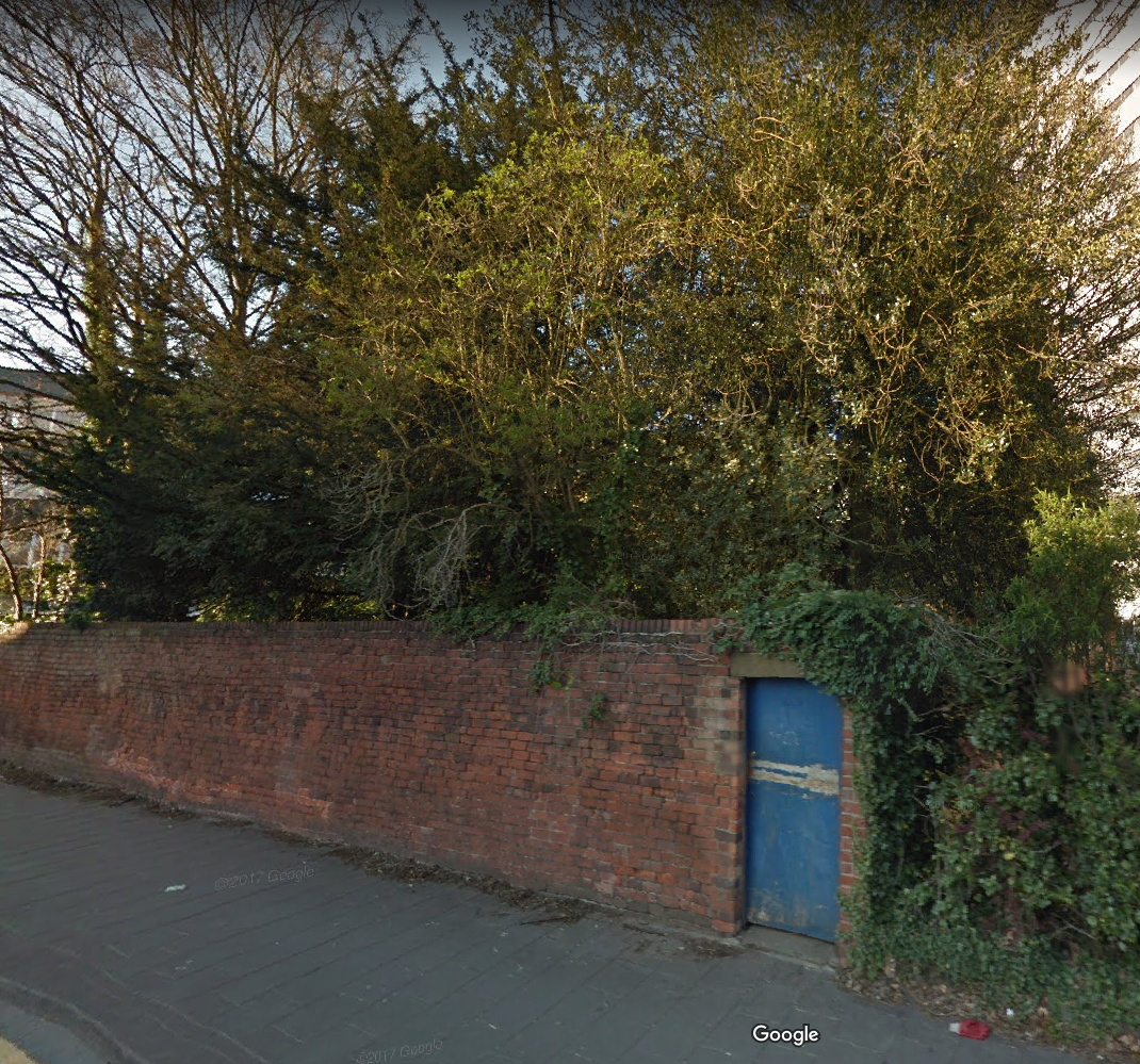 As such it’s not pleasantly walk-able from the city centre, unless you can stand having traffic in your ears and lungs all the way. Nor is it reachable on foot along the canal towpaths, even if these were safe to walk once you get outside the city centre. However, if you’re there by taxi, note that he lived almost within sight of the Oratory at 4 Highfield Road, Edgbaston, from 1909-11 — at which location Google Street View shows this evocatively tree-ish ruin and gate today…