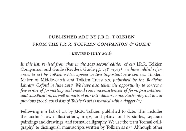 A handy new list of Tolkien’s Published Art, which is a newly-revised update of the art section to be found in J.R.R. Tolkien Companion and Guide: Reader’s Guide (2017 edition). It’s kindly been placed online for free by the authors, in PDF.