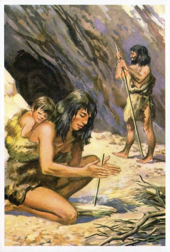 But along the way I did find a fascinating subset of ‘the imaginative illustration’ type: the prehistoric visualisation of early man’s history. Many appeared more widely, it seems, than just in books. They also appeared on things like collectable cards and stamps…