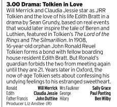 While we’re waiting for the slow-as-treacle big-screen Tolkien biopics to arrive (two are said to be due), Radio 4 is to repeat the one-hour “Tolkien in Love” Afternoon Play drama this Sunday, 9th December 2018. Appears to have been first broadcast 2017. It follows a 30-minute mid-morning documentary of the same title, broadcast by Radio 4 in 2012.