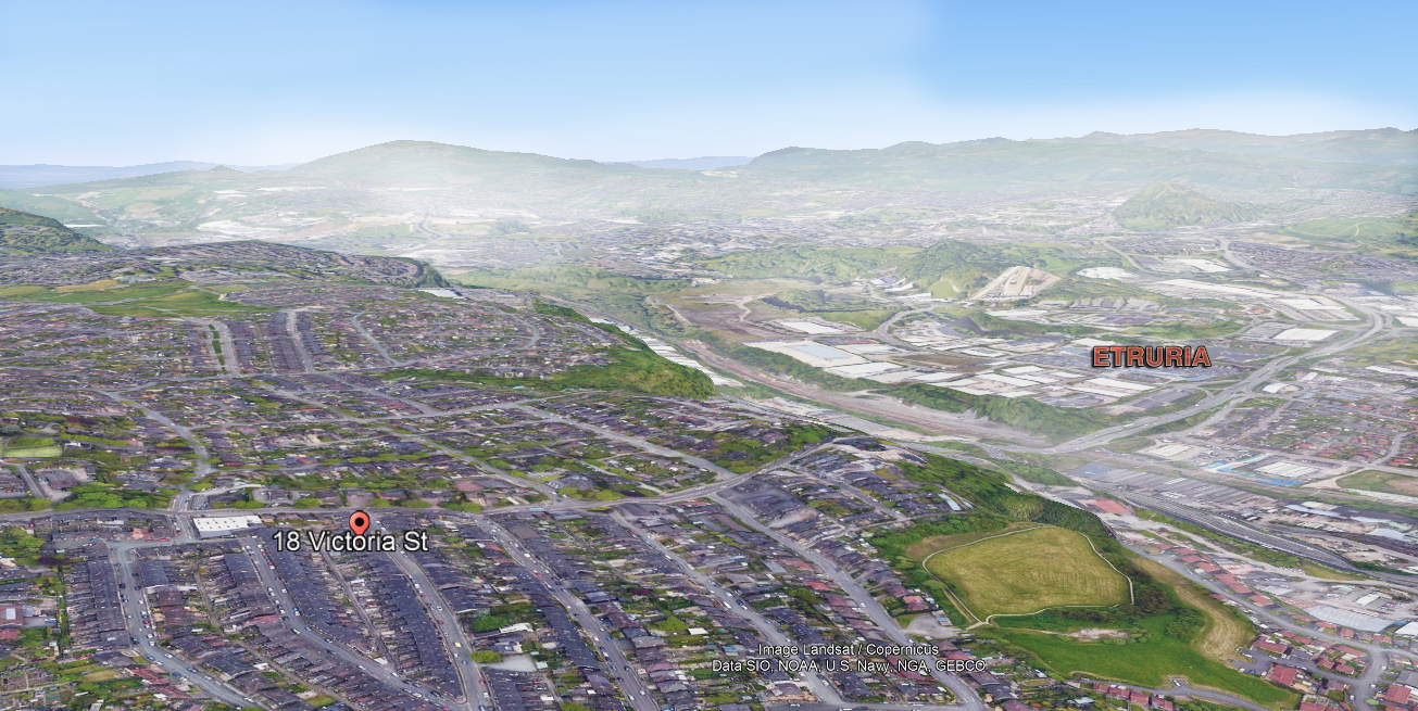 If Wells had then looked from the right-hand upper front window, assuming no houses in the way, by craning his neck a bit he could have perhaps have seen a view SSE over flat fields which went gently sloping away in the general direction of Stoke town. But he would not have been looking directly down onto the valley and nor would that view (if view it was) have shown him anything of Etruria.