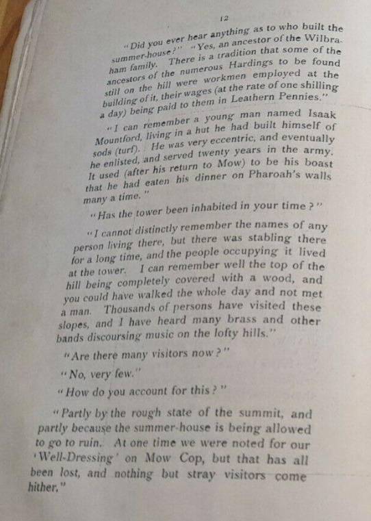 Part of an interview with an old man of Mow Cop, published in a booklet on A Short History of Mow Cop in 1907 (aka Mow Cop and its Slopes: A Short History). It’s a £10 eBay listing and I can’t get more of it.