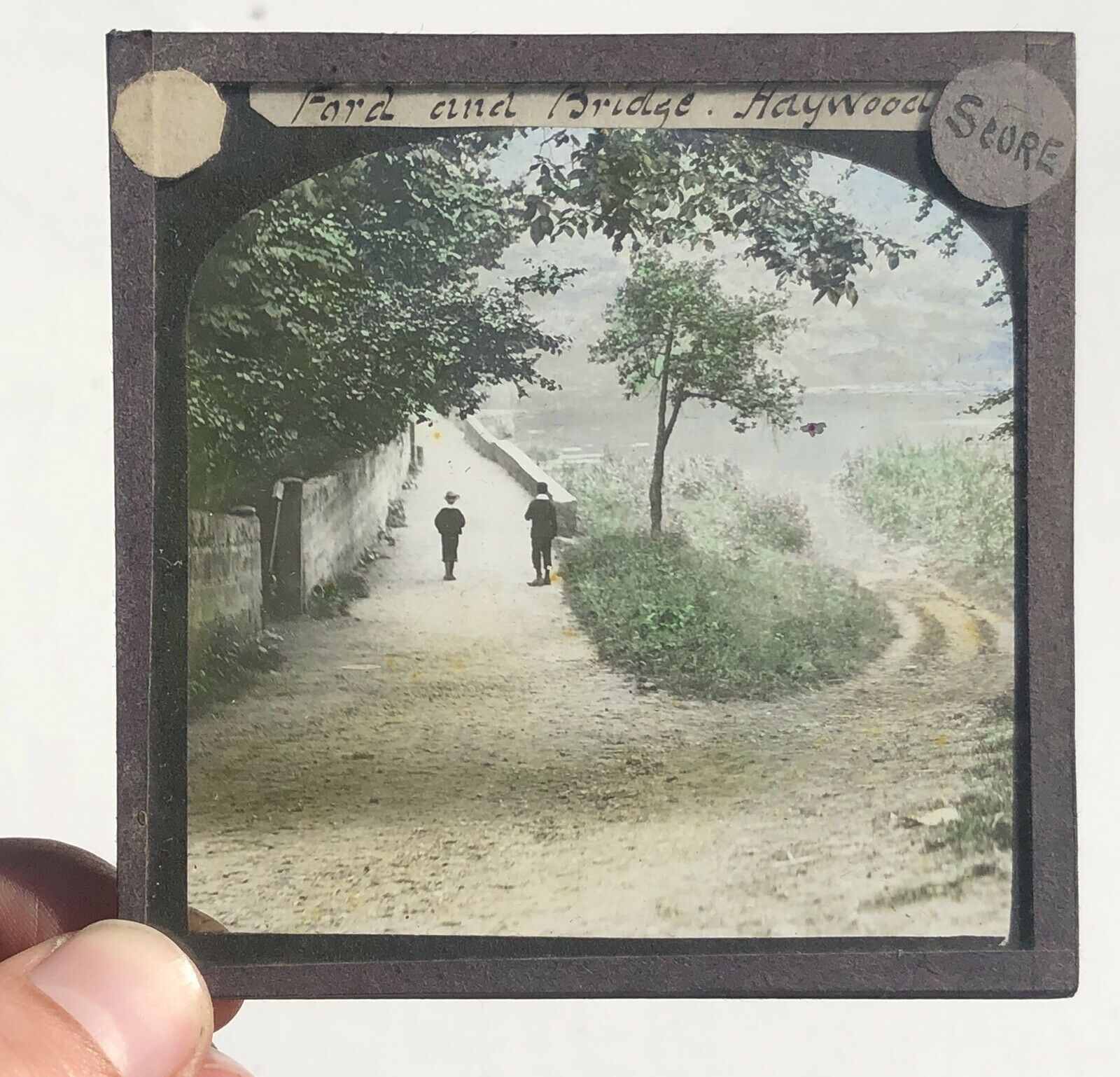 This may interest Tolkien people. A c. 1900s lantern slide of the ford and bridge-end at Great Haywood. Photographed from the village side, as Tolkien would have known it perhaps 10 or so years later. The ramp goes up onto the bridge. The colorising is on the original.
