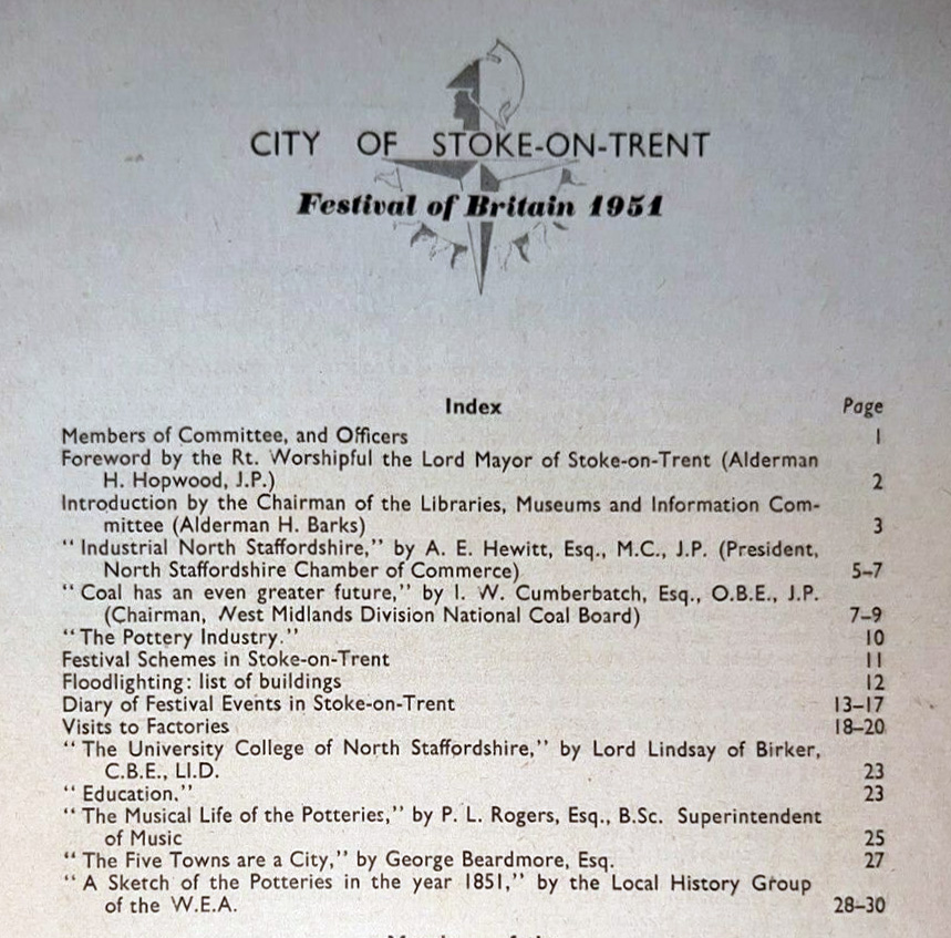 From “The Potteries in the year of the Great Exhibition”, issued as a 28 page booklet by the Festival Committee of the Council of the City of Stoke-on-Trent, to mark the Festival of Britain in 1952.