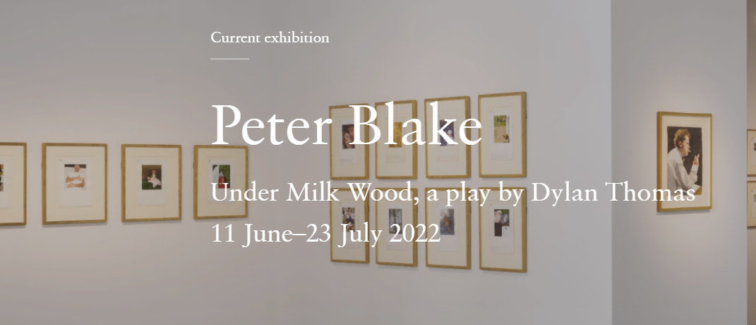 Peter Blake – Under Milk Wood. Over 150 watercolours and collages by the seminal British pop artist, illustrating and evoking the famous play by Dylan Thomas. On show in Cork Street, London, until 23rd July 2022.