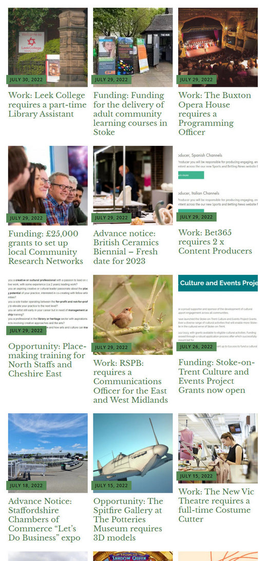 The Potteries Post – From the city of Stoke-on-Trent and beyond, news you can use. Not much local creative / eco news at present, as we’re moving into sleepy August, but there’s still a smattering to be had. The Post will be in “slow mode” for August, and back in early September.