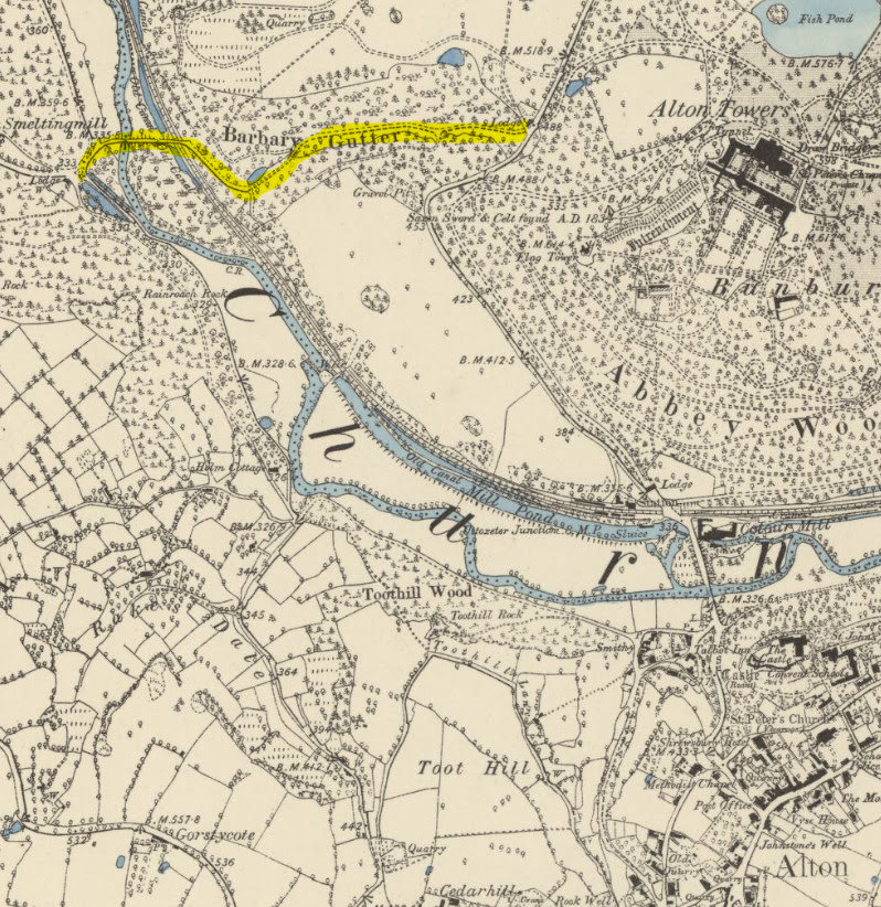 A study of local molluscs for the journal of the North Staffordshire Field Club (1921) adds a little more data to the location of this Gutter. The diligent mollusc-hunter Mr Atkins noted a colony thriving under damp fir-bark at Alton on or near the…