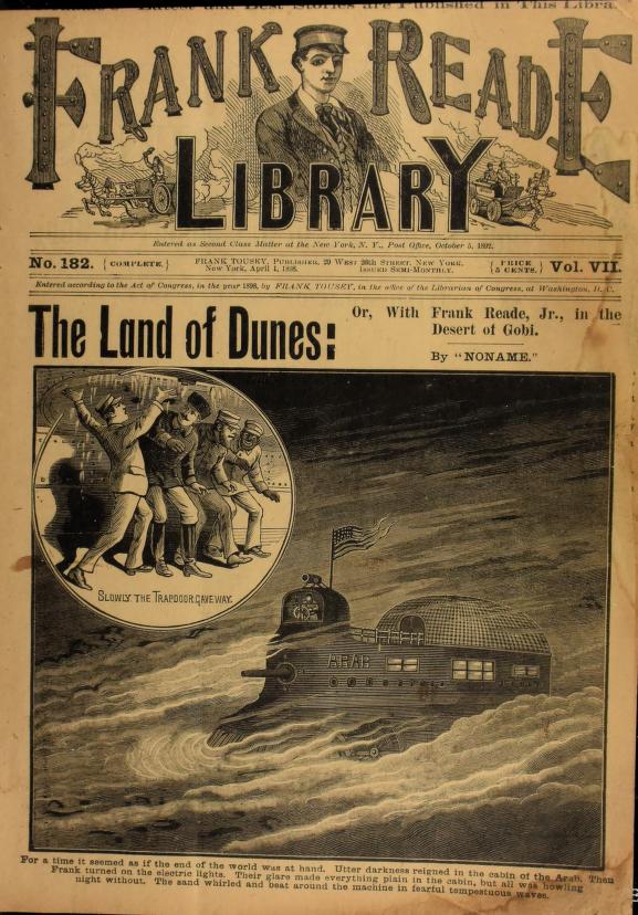 2) I might also have mentioned H.G. Wells “The Land Ironclads” (1903) as having a slim claim to being the first ‘hard’ SF. But I think Arthur C. Clarke was right when he called it “an engineer’s story”, rather than imaginative futuristic SF. The new invention is deployed in the present-day (Wells’s setting is 1903’s cavalry, bicycle, trench and “Howitzer” artillery warfare of the Boer War) to make various political points. His armoured war-vehicles are 80-foot steam-powered metal tanks — and rather akin in shape to the various armoured land-craft that had, for a decade or more by then, been the staple of the American ‘boy inventor’ weekly story-magazines…