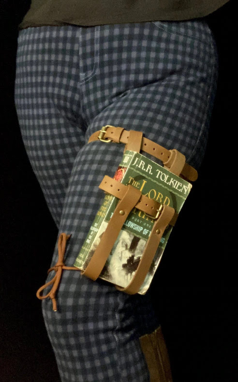 Although I can see immediately that it’s likely to chafe someone in summer-clothes and will also restrict the blood flow. Nice for posing at a hipster campfire party or deep winter walking when well-padded, but not for walking ten miles in summer. Perhaps better to get one of these, into the shoulder-bag for which a slim Hobbit-sized paperback can also slip. Regrettably, you can’t now get them from Amazon.