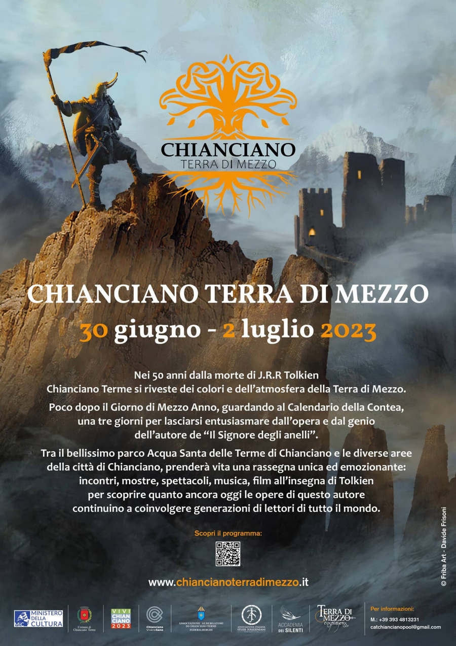 over three days, from 30th June to 2nd July 2023, offering insights from internationally renowned speakers, and multiple cultural events in Chianciano, from the Parco Fucoli and Parco Acqua Santa to the historic centre. “Chianciano Terra di Mezzo: Journey into Tolkien’s genius” was developed by the town with the ViviChianciano (‘Living Chianciano’) public-private network which is made up of over 50 companies from Chianciano, and which obtained the patronage of the national Ministry of Culture and the Associazione Italiana Studi Tolkieniani (‘Italian Association for Tolkien Studies – Tolkien Society of Italy’).”