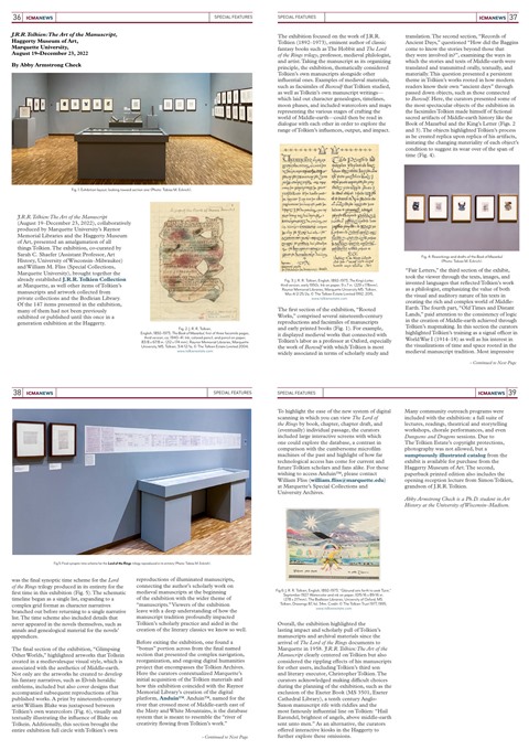 * The March 2023 issue of ICMA News had a review-report on the 2022 ‘J.R.R. Tolkien: The Art of the Manuscript’ exhibition.