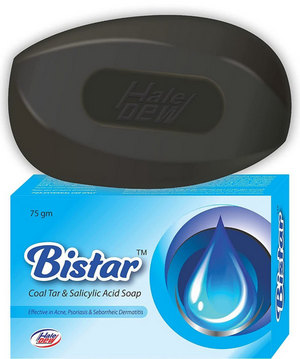 The only genuine coal tar soap of any reputation in the UK seems to be Cosalic soap made by Salvia of India (aka Coslic or Cosilc on eBay). 3% coal tar. Possibly this is branded as Bistar in India, since Bistar has the same distinctive bar shape and colour as Coslic. They actively play on the “coal” idea, by making it look like a shaped lump of black coal. Nice idea, and delightfully politically incorrect.