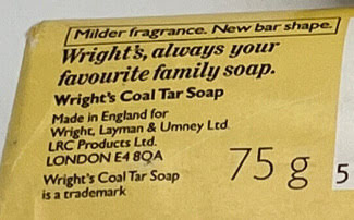 Wright’s soap is now said to be made in Turkey at the behest of a brand owner in Solihull, near Birmingham. The old original Wright’s firm having sold out at the end of the 1960s. The active antiseptic ingredient is now the cheap and ubiquitous ‘tea oil’, rather than coal tar (aka liquor carbonis).