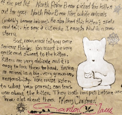 * And finally, Tolkien and cats. An obscure little topic, but one I’m casually interested in. Perhaps it will eventually amount to a small counter to the “Tolkien hated…” brigade. He knew cats as a boy, since he and his brother would play with them in the corridors at the Birmingham Oratory. But he also knew cats later in his family life. Since his children evidently had a white kitten for Christmas, as his Father Christmas letters show…