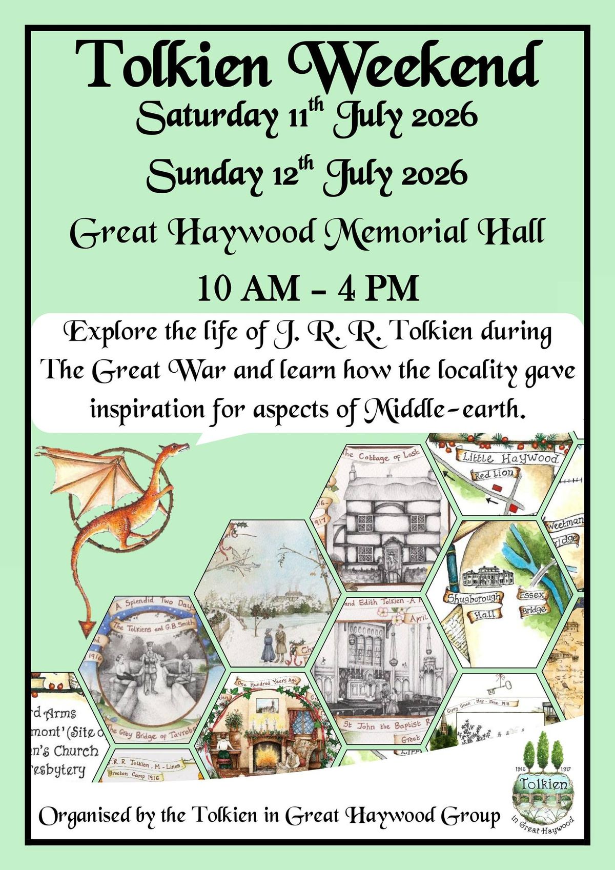 * And finally, a Tolkien weekend is planned for Great Haywood in mid Staffordshire, in July 2026. Free admission. With the event poster suggesting there will also be a showing of artworks relating to Tolkien and Edith in the locality during wartime. Some of these are glimpsed on the poster.