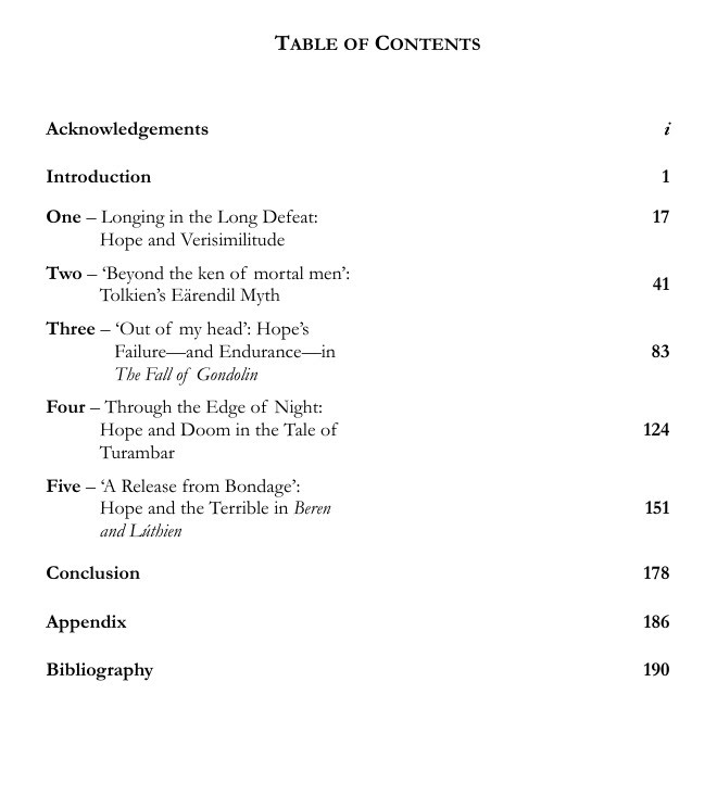 “examines the presence and quality of difficult Hope in J.R.R. Tolkien’s early mythology, chiefly across the years c. 1913 to c. 1938. Approaching his work through the combined lenses of biography, mythological vision, linguistic pursuit, and religious conviction, it treats the ‘tower’ of Tolkien’s legendarium not as a structure to be dismantled, but as a work of remarkable craft still able to grant a meaningful view. At its centre lies Hope as a vital, often hidden bond-stone in Tolkien’s so-called Great Tales: not optimism, but a hard and costly longing for things to come right, somehow, grounded in an ultimately eschatological horizon. Because Tolkien was not a theologian working in systematic terms, this study follows Hope as he himself explored it”
