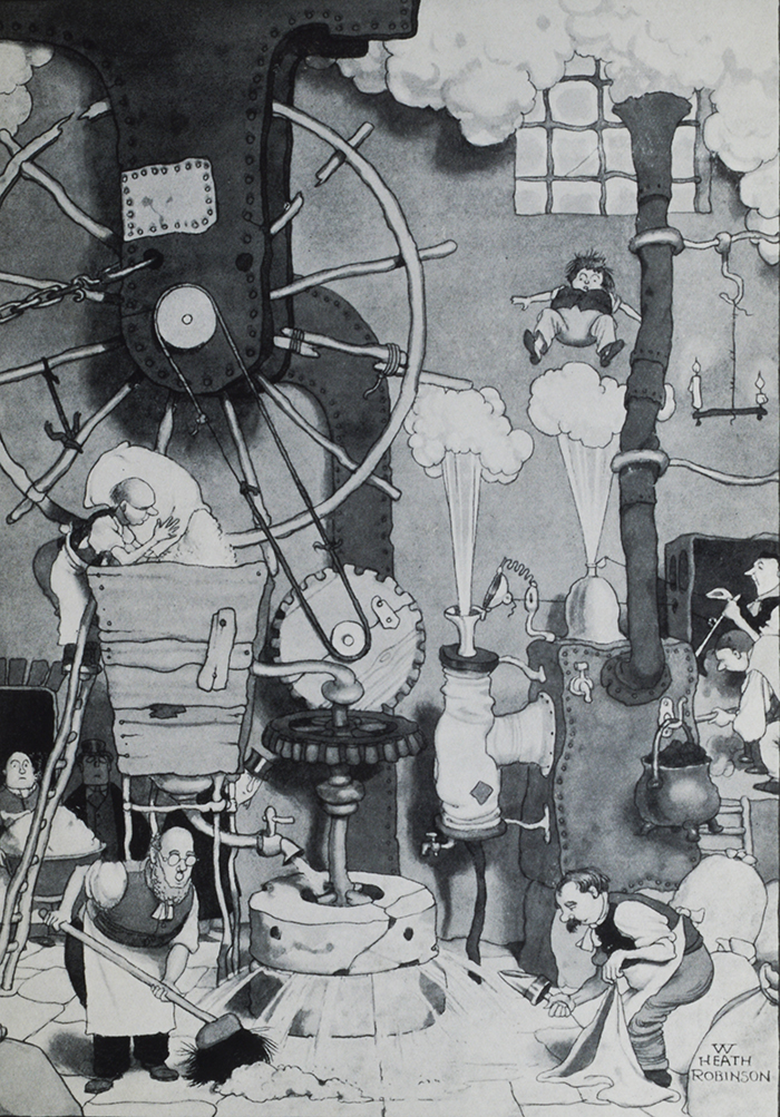 Picture: Heath Robinson’s version of the early years of Hovis production, from his Unconventional History of Hovis (1926).