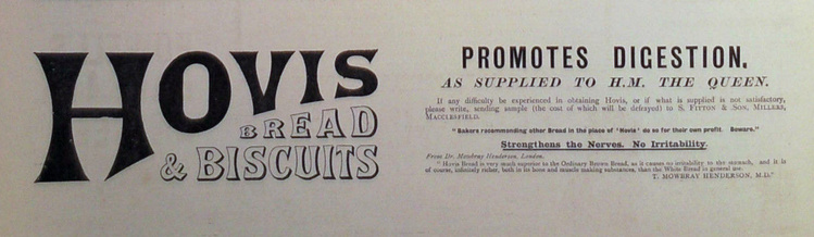 “Bakers wanting to produce Hovis bread had to buy stamped tins, paper bags and the flour from Messrs Fitton, who insisted that only bread made from their flour could be baked in the tins and sold as Hovis, an insistence they were always prepared to back with court actions. Its advantage for the baker was that he did not have to bother with advertising or publicity as that was all handled by the company.” — The Agrarian History of England and Wales, page 1089.