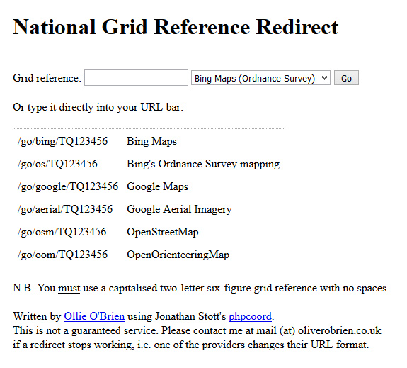 In future it would be great to see it work with the excellent footpathmaps.com. The other great UK mapping service maps.nls.uk can already handle OS grid reference input, although only for historic maps, and it’s often as slow as all the others (bar footpathmaps.com).