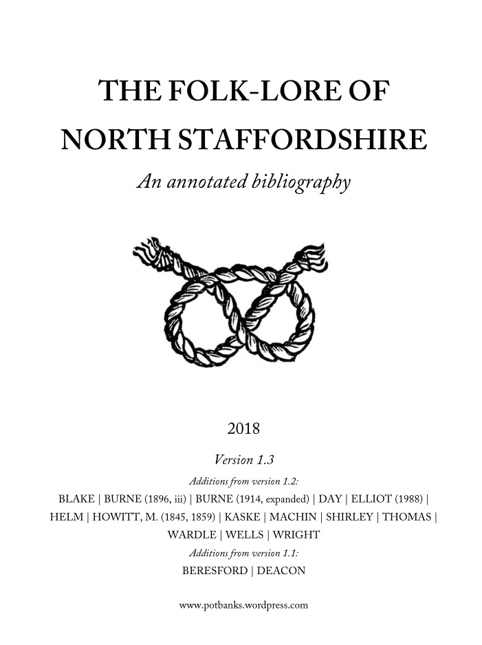 2018 (ongoing): The Folk-lore of North Staffordshire. A free comprehensive annotated bibliography in PDF. Updated annually, and at December 2025 in its final v2.0 form.