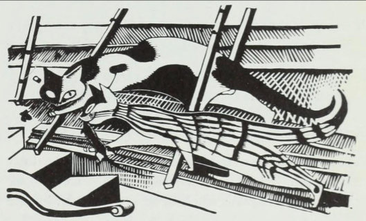 German ship-cats by Gerhard Marcks, a 1921 signed print. At this point in time Marcks was starting a six-year employment in a “teaching position at the Bauhaus school in Weimar”.