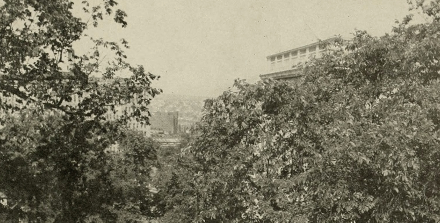 This 1946 view, looking west from a similar spot at the top of College Hill but this time looking through the elm trees, is also indicative. The roof of the John Hay Library is seen on the right of the picture, and the Industrial Trust building can just be seen in the distance on the left.