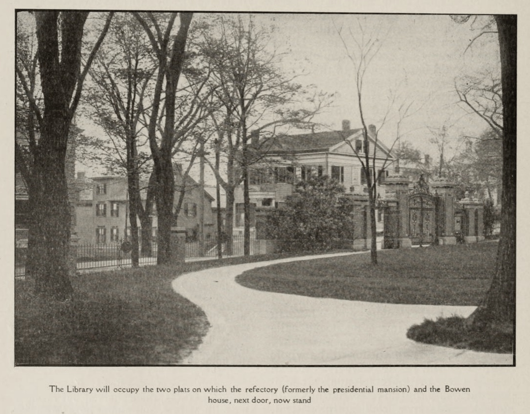 The John Hay Library would be built on the corner seen to the right of Lovecraft’s house in the 1908 picture, the Library rising where this former “President’s House” had stood…