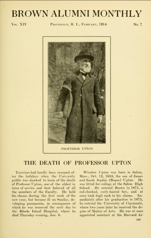 Possibly this was the man who saved Lovecraft’s life. As a youth Lovecraft was contemplating throwing himself into the river in despair — just before the kind offer came from Prof. Upton.