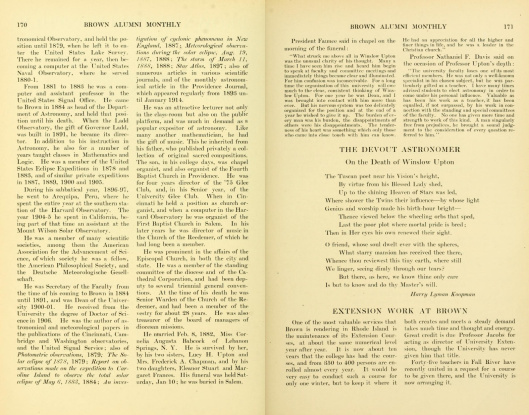 “The late Prof. Upton of Brown, a friend of the family, gave me the freedom of the college observatory, (Ladd Observatory) & I came & went there at will on my bicycle.” — H.P. Lovecraft.