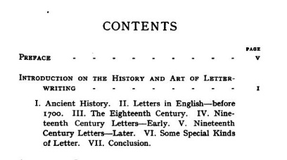 In 1922, George Saintsbury published A Letter Book, Selected with an Introduction on the History and Art of Letter-Writing, with the Introduction running to a fulsome 100 pages. The rest of his 300-page book draws on classic letters, almost all English, to provide examples of points made in the Introduction.