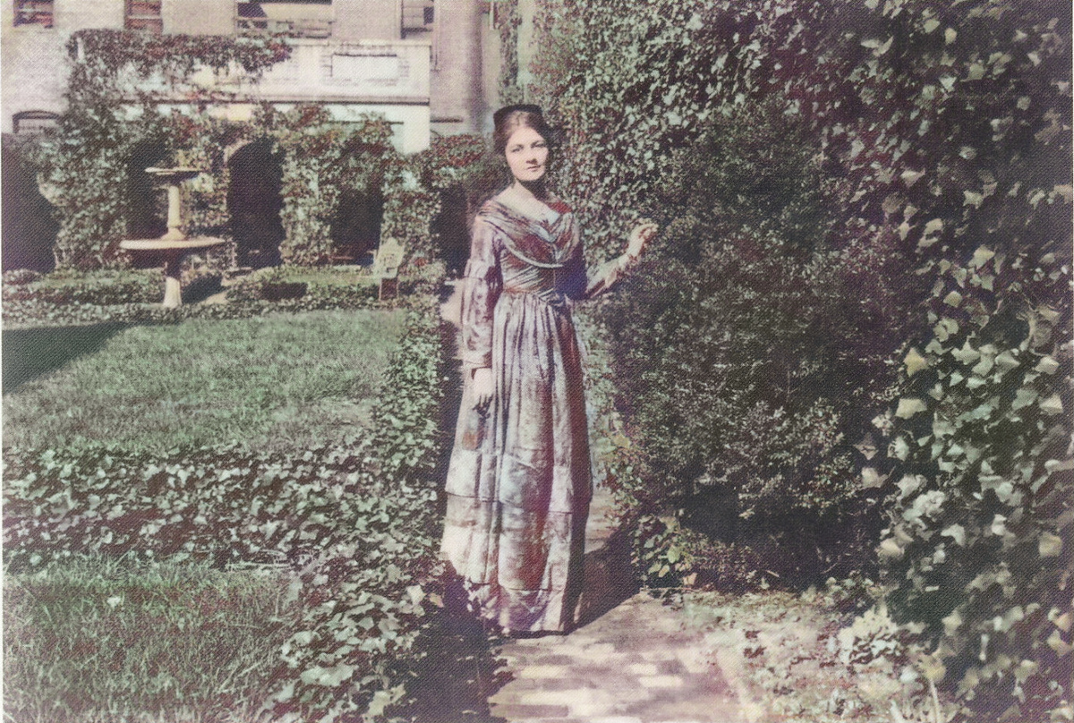 Recreation of Virginia as a teenager, in the garden of the ‘Poe Shrine’ in Richmond.