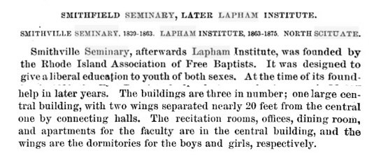 Of Whipple Phillips’s wife Robie [married Jan 1856] very little is known. Lovecraft states that she attended the Lapham Institute (cited by Lovecraft as “Lapham Seminary”) in North Scituate, Rhode Island … but does not supply the date of her attendance.