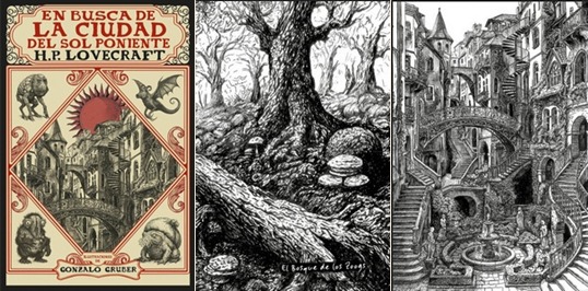 * From Spain, a new illustrated edition of Lovecraft’s Dream-Quest, though here titled as En Busca de la Ciudad del Sol Poniente (trans: ‘In Search of The Sunset City’).