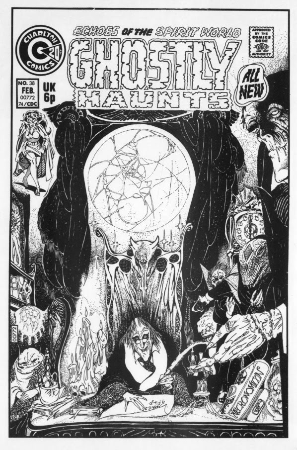 And in Cartoonist PROfiles #24 (1974), an illustrated Tom Sutton interview with a fabulous 1974 Charlton cover in b&w. The cover as published was rather badly coloured.