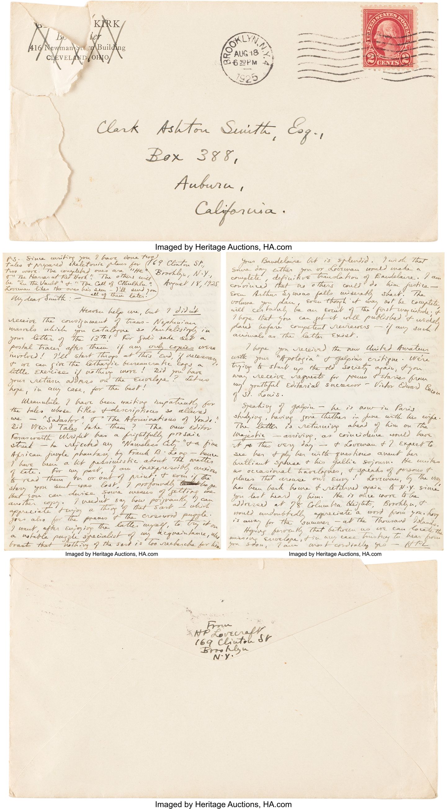 * Up for auction, The David Aronovitz Collection of Important Science Fiction and Fantasy. A two-part auction, in May and then December 2026. Including an August 1925 Lovecraft letter sent from Red Hook to Clark Ashton Smith…
